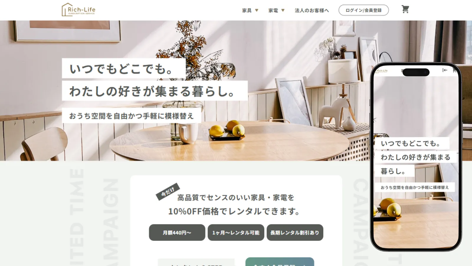 リキッドレイアウトを採用し、どのデバイス幅でもデザイン通りに再現をしています。
